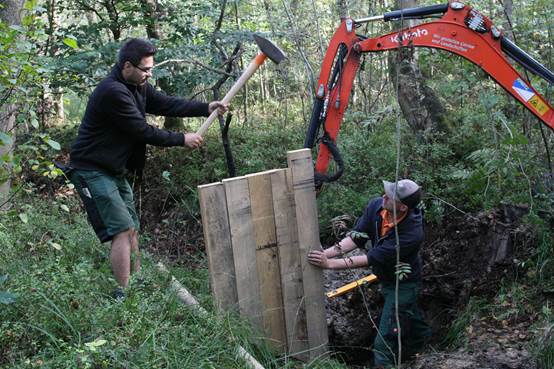 - Einbau von Holzspundwänden und Lehmschürzen zur Stauhaltung
