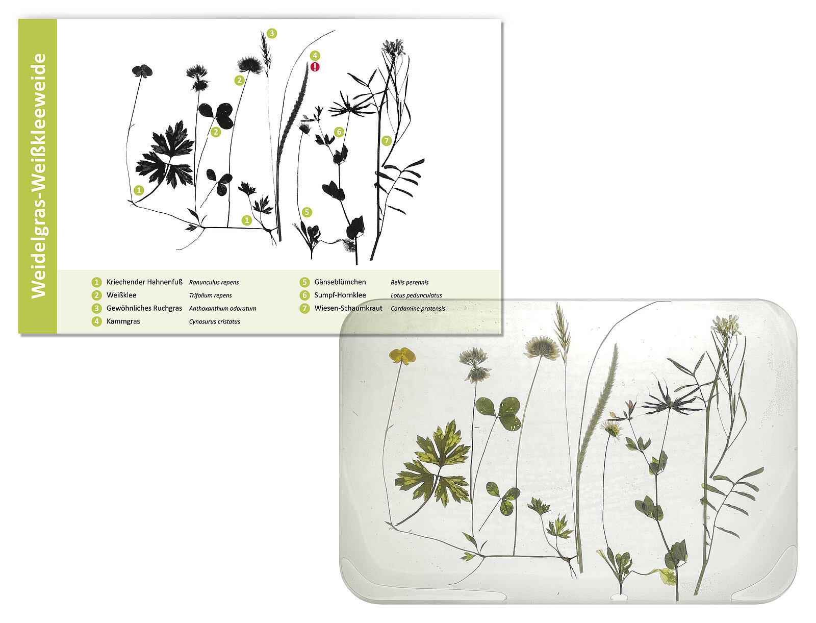 Zahlreiche einzeln eingeharzte Pflanzen können so Fotografien zugeordnet werden – vergleichbar mit dem Lernen von Vokabeln. Um das neue Wissen zu testen, kann im Sommer im Garten des Naturschutzzentrums nach den jeweiligen Exemplaren gesucht werden.