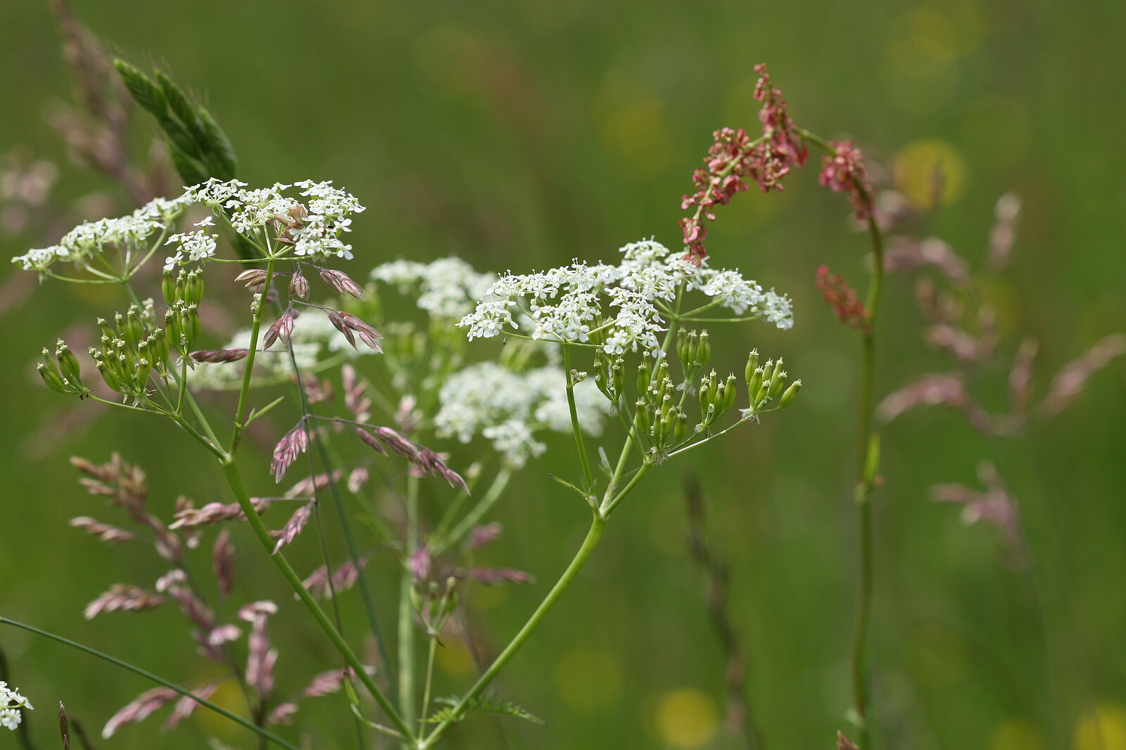 Je nach Wuchshöhe lassen sich in Glatthaferwiesen grob drei Blühhorizonte unterscheiden – von bodennahen Frühblühern über mittelhohe Gräser und Kräuter bis hin zu den hochwüchsigen Leitarten im Sommer.