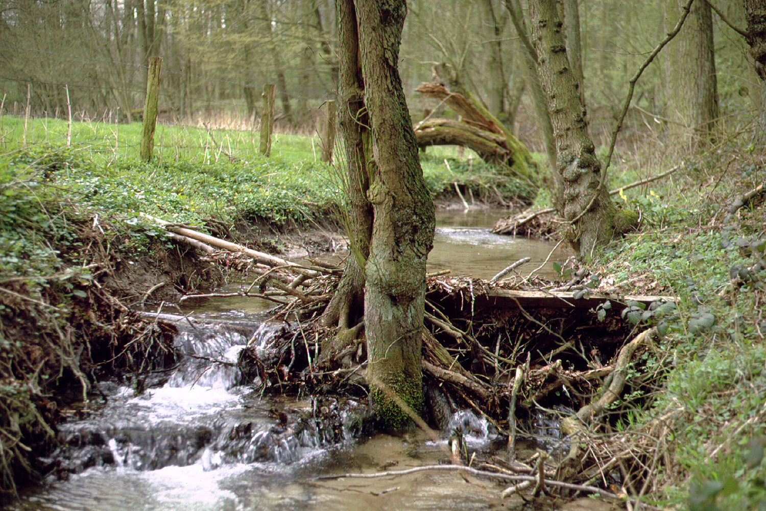 Kalktuff-Terrassen sind nach Beyer (1992) in der westfälischen Bucht nirgends so deutlich ausgeprägt wie in der Bombecker Aa. Sie entstehen dort, wo aus nahe gelegenen (Kalktuff-)Quellen kalkreiches Wasser austritt. Der Kalk, genauer Calciumcarbonat (CaCO3), umkrustet Äste, Blätter und Algen. Hierdurch entstehen quer im Bach verlaufende Bänke (ähnlich Treppenstufen) von hartem, porösem Kalktuff. Dieser bietet wiederum wertvollen Lebensraum für eine an diese Bedingungen angepasste Quellfauna (Feest 1983). Die kleinräumigen Geotope sind gesetzlich geschützt. Sie dürfen nicht betreten werden!
