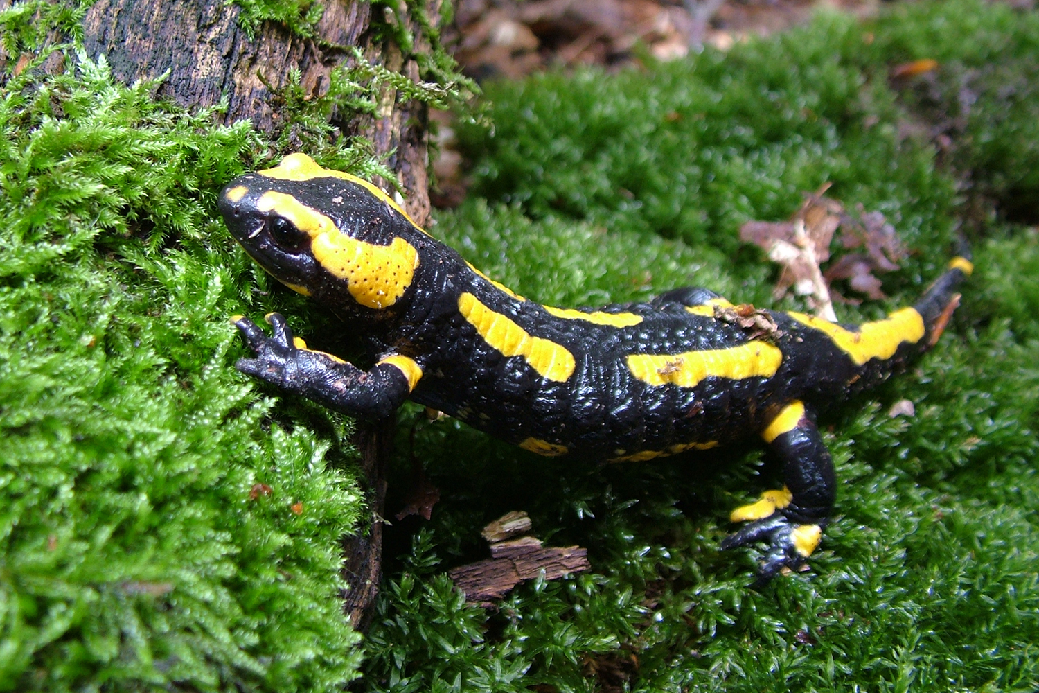 Mit ihrem anmutenden, langsamen Gang und der auffälligen Farbgebung erscheinen sie wie Tiere aus vergangener Zeit. Feuersalamander gehören zu den Amphibien (Lurchen), sind im Gegensatz zu Fröschen oder Molchen aber ausgesprochene Landtiere. Nur die Weibchen gehen zum Wasser, um dort die Larven zu gebären. Die Tiere besiedeln überwiegend schattige Laubwälder (bevorzugt Buchenwälder), in denen sie zur Nahrungssuche zumeist in der Nacht unterwegs sind. Am Tag halten sie sich unter liegenden Baumstämmen, in Erdhöhlen, unter Steinen oder in der Bodenlaubschicht auf. Die Larven des Feuersalamanders benötigen zur Entwicklung naturnahe Quellbereiche von Bächen, können sich aber auch in Stillgewässern wie wassergefüllten Wegrinnen oder Tümpeln entwickeln. Zum Schutz vor Fressfeinden wie Igel oder Fuchs scheidet die Haut der Tiere ein Gift aus. Im Kreis Coesfeld ist der Feuersalamander im Bereich der größeren, zusammenhängenden Laubwaldbestände mit zahlreichen Quellbächen zum Teil noch relativ weit verbreitet (u.a. Baumberge, NSG Kestenbusch, NSG Roruper Holz). Die Tiere lassen sich am besten an nassen Frühsommerabenden und -nächten beobachten. Die Feuersalamander verlassen ihr Versteck häufig nach starkem Sommerregen und sind dann auch schon mal auf den Waldwegen unterwegs.