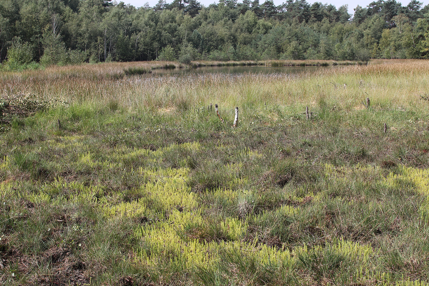Das Gewässer ist entlang der flach auslaufenden Ufer mit typischen Arten der Moorgewässer wie Torfmoosen (Sphagnum fallax, Sphagnum cuspidatum, RL 3/3), Wollgräsern (Eriophorum angustifolium, RL 3/*N, Eriophorum vaginatum, RL 3N/3N), dem fleischfressenden Rundblättrigen Sonnentau (Drosera rotundifolia, RL 3N/2N) und der zierlichen Moosbeere (Vaccinium oxycoccus, RL 3N/3N) ausgestattet. Auch seltene Laubmoosarten wie Calliergon stramineum (RL 3/3) oder Aulacomnium palustre (RL 3/3) sind hier zu finden. Das Umfeld des Heideweihers bilden Feuchtheidebestände, die zu den Resten eines ehemals großflächigen Heidegebietes rund um den Monenberg gehören.
