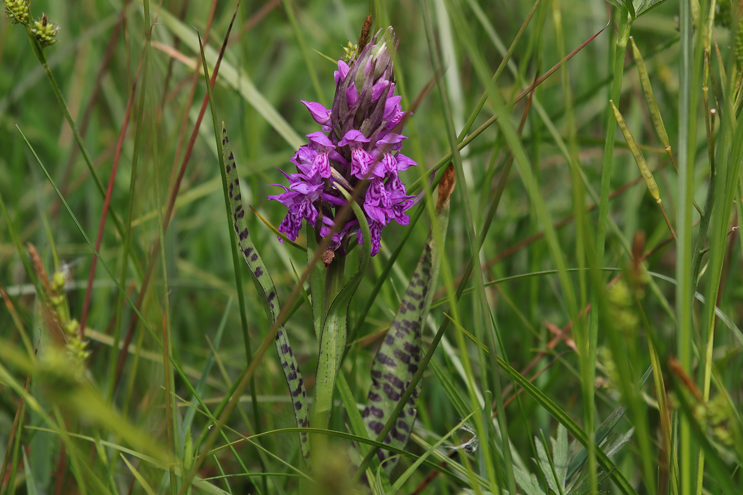 Weitere Orchideen wie Großes Zweiblatt (Listera ovata) und Breitblättrige Stendelwurz (Epipactis helleborine) bereichern den vielfältigen Bestand. Als ein besonderer Höhepunkt konnte vor wenigen Jahren erstmals die Natternzunge (Ophioglossum vulgatum, RL 3N/3N) nachgewiesen werden. Seit über 20 Jahren wird die Fläche ehrenamtlich betreut. Einmal im Jahr, nach der Orchideenblüte, wird die Parzelle von Hand gemäht und das