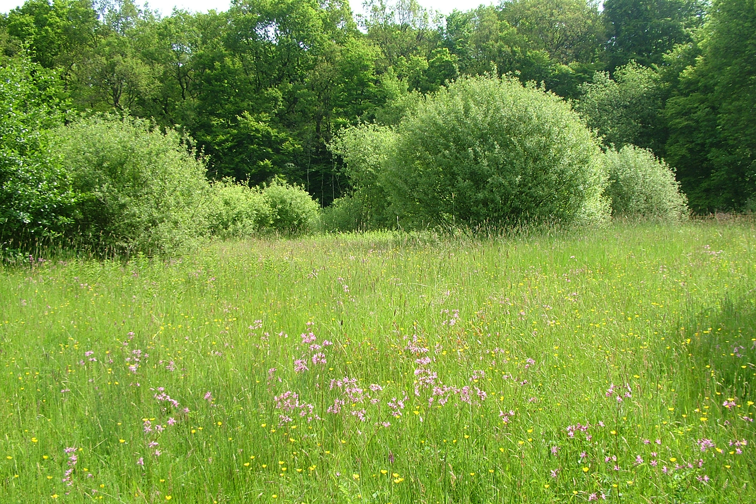 Neben großen Orchideenvorkommen von Breitblättrigem und Geflecktem Knabenkraut (Dactylorhiza majalis, RL 3N/2N - Dactylorhiza maculata, RL 3N/3) blühen Arten wie Margerite (Leucanthemum vulgare), Acker-Witwenblume (Kanutia arvernsis), Wiesen-Flockenblume (Centaurea jacea s.l.), Spitzblütige Binse (Juncus acutiflorus) und Wald-Engelwurz (Angelica sylvestris) auf der Wiese. Mahdgut abgeräumt. Dem Ehrenamt ist es zu verdanken, dass die Wiese, die bereits umgebrochen war, dennoch wieder als solche genutzt wurde. Sie befindet sich heute im Eigentum der Stadt Lüdinghausen und wurde mit Landesmitteln und Unterstützung des Heimatvereins Seppenrade für Naturschutzzwecke angekauft.