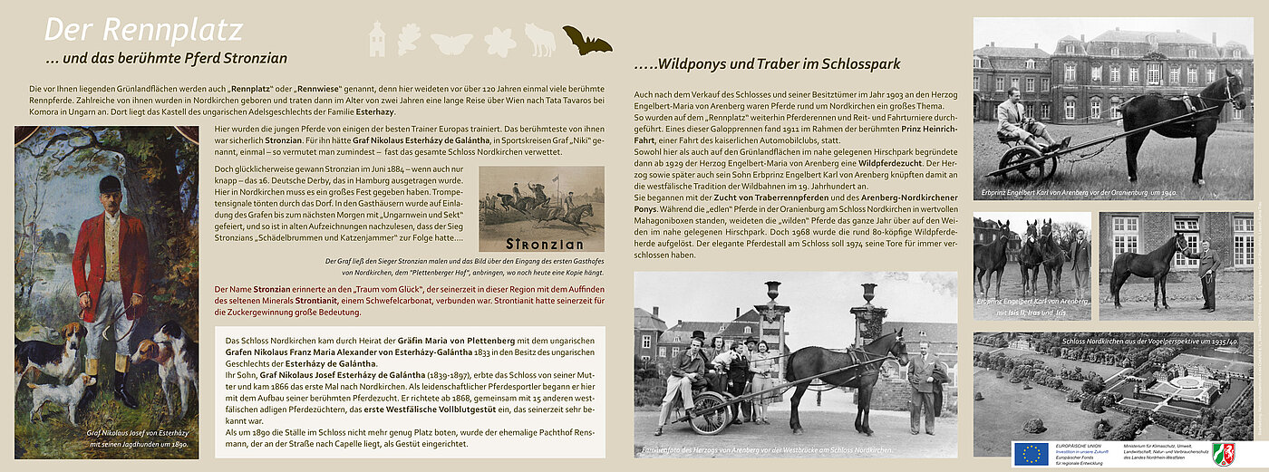 Einer Lithographie aus dem Jahr 1911 zufolge wurde das heutige Grünlandgelände einst als Pferderennbahn mit Naturhindernissen genutzt – ein Hinweis auf die bewegte Vergangenheit des Ortes. Noch heute trägt der zentrale Offenlandbereich den Namen „Rennplatz“.