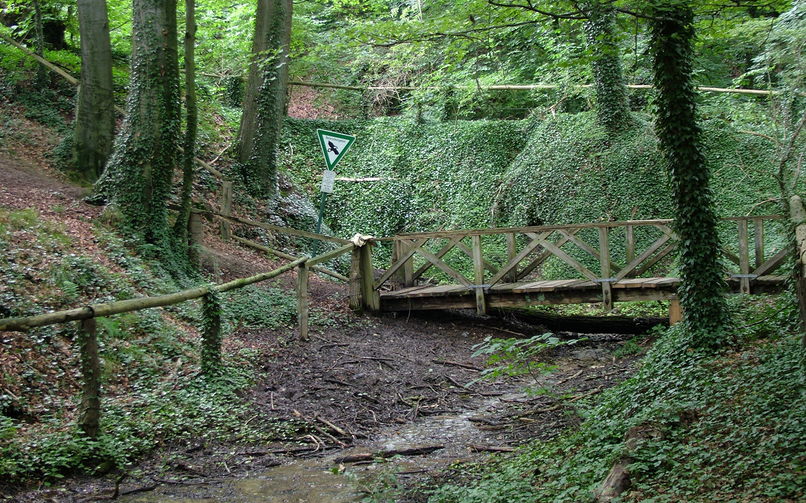 Die Baumberge: trockene Höhen, quellreiche Hänge, feuchte Täler: Beeindruckend sind die zahlreichen Quellen und die zum Teil sehr tief eingeschnittenen Bachtäler, die es in den Randlagen des Höhenzuges gibt. Der Grund für ihre Entstehung ist die besondere Geologie des Naturraumes. Die Baumberge sind aus klüftigem Kalkmergel der Kreidezeit (Untercampan) aufgebaut. Durch die Spalten und Klüfte des Gesteins versickert das Niederschlagswasser recht schnell. Es trifft etwas weiter unten auf wasserstauende Schichten, drängt hier wieder an die Bodenoberfläche heraus und bildet somit die Quellen.